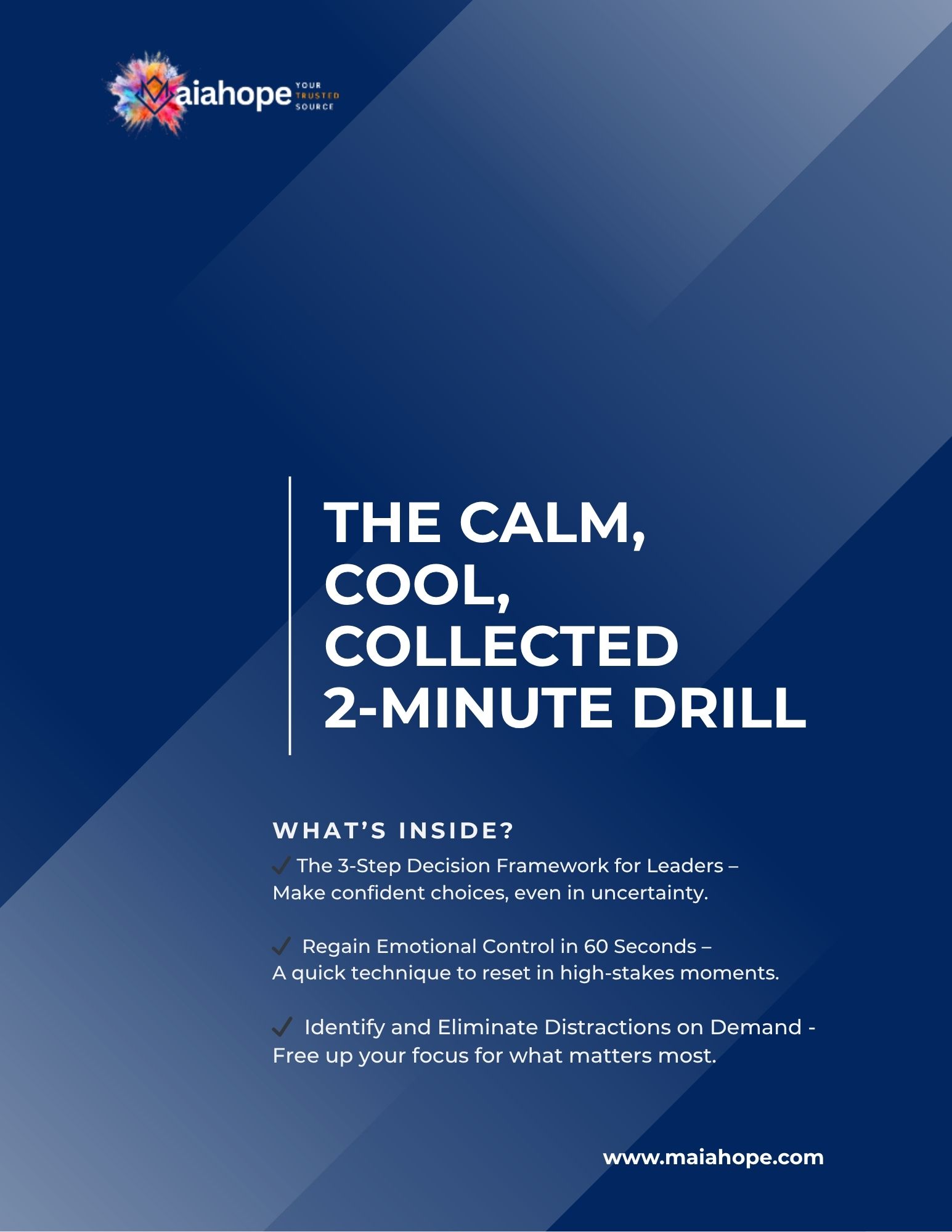 Led by Maia Hope—Crisis-Proof Leadership Coach, trusted confidant, and behind-the-scenes support for leaders who can’t afford to fall apart—Crisis-Proof Leadership equips high-stakes decision-makers with everything they need to lead with strength, even in the most uncertain moments.
